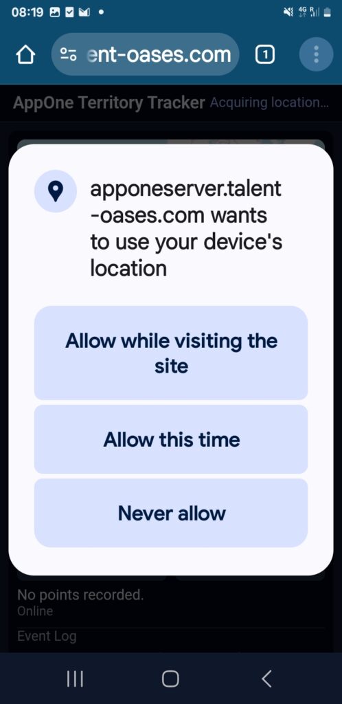 You may need to give location permission. Tap “Allow while visiting the site” or “Allow this time only“.