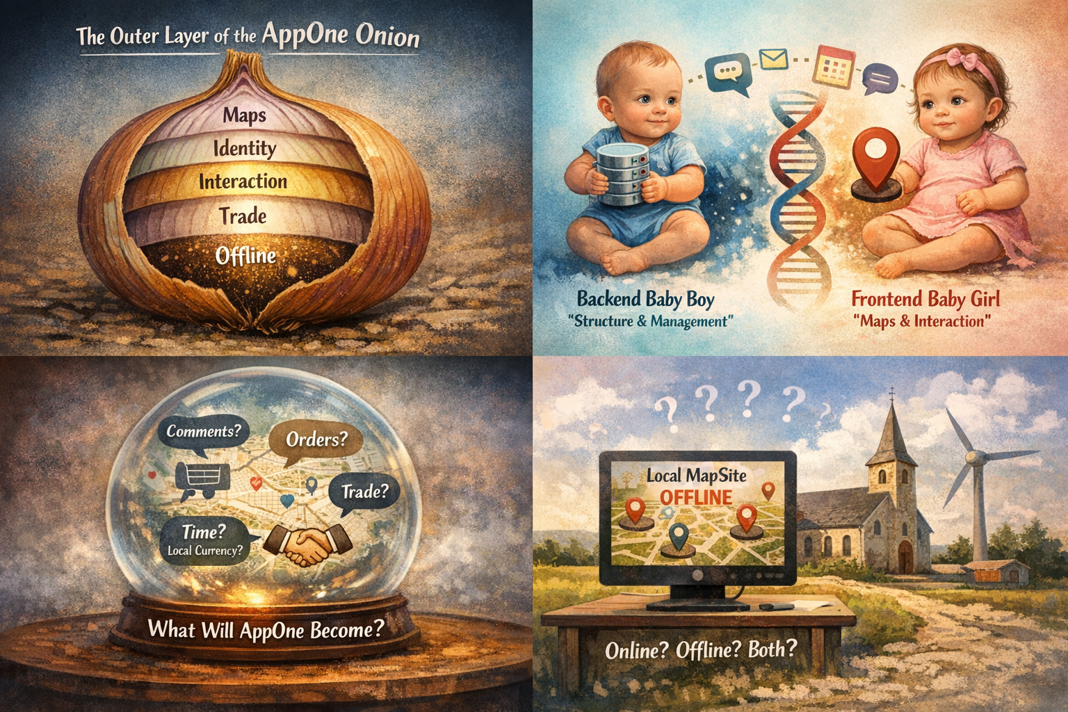 On 24th January, we pre-launched the littleshops Danmark Mapsite. We have also launched a littledenmark Playground Mapsite. But what is this "littledenmark AppOne"? Is it just Maps??? The twins metaphor I want you to see AppOne as infant twins, babies that are growing into young infants - rapidly growing and evolving. One of the babies is the AppOne "Backend Baby Boy". The other is the "Frontend...